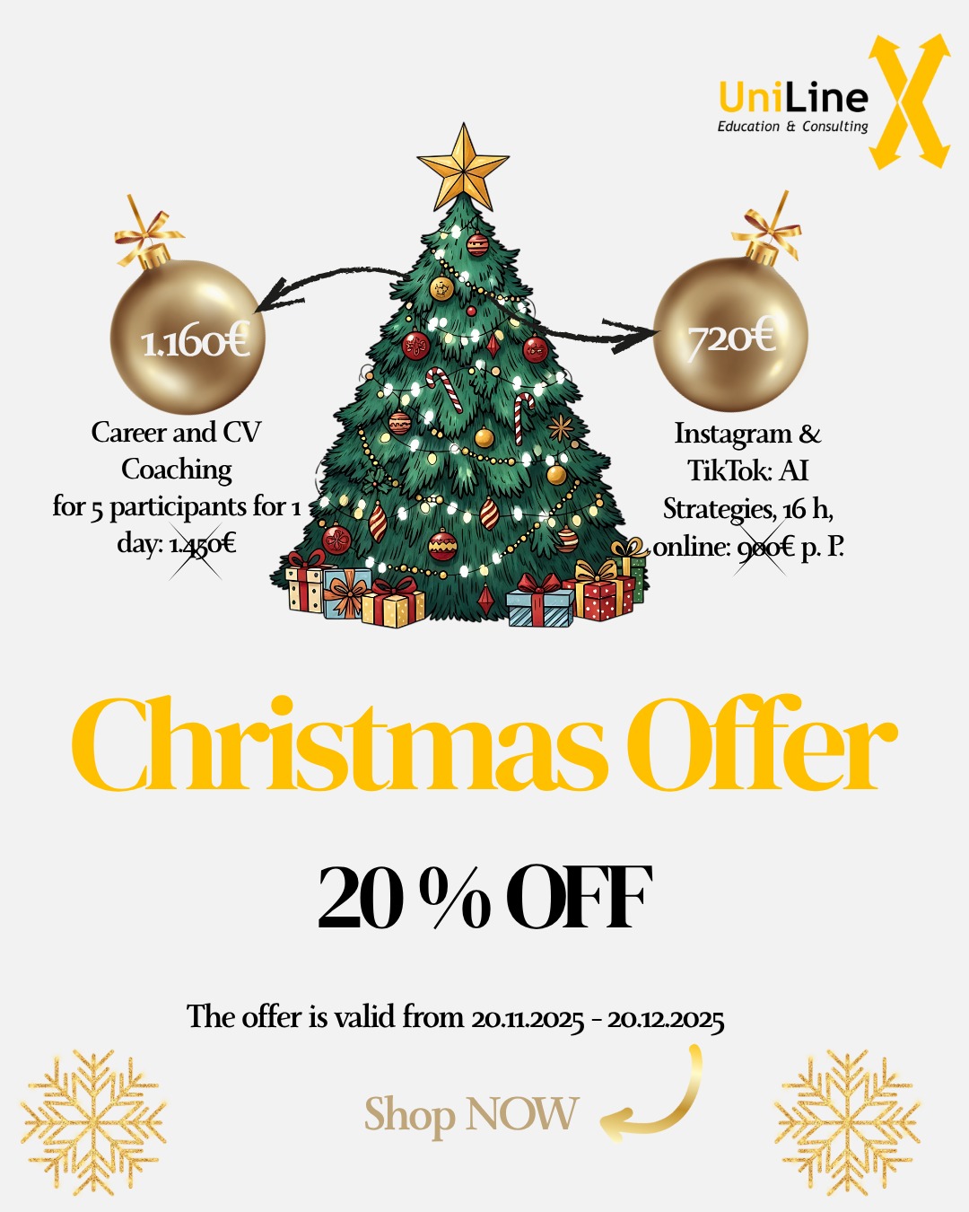 This year, take your career to the next level. Enjoy 20% OFF on our exclusive coaching programs! Whether you’re interested in Career & CV Coaching or Instagram & TikTok: AI Strategies, now is the perfect time to secure your spot and step into 2026 with powerful new skills!